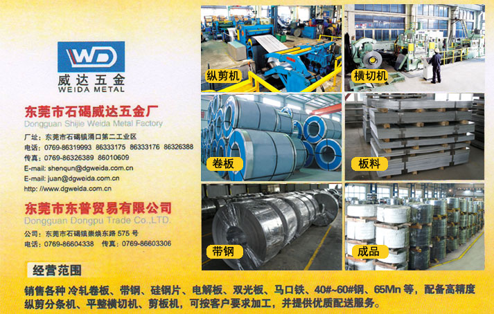 經(jīng)營范圍:銷售各種冷軋卷板、帶鋼、硅鋼片、電解板、雙光板、馬口鐵、40-60#鋼、65Mn等,配備高精度縱剪分條機、平整橫切機、剪板機、可按客戶要求加工,并提供優(yōu)質(zhì)配送服務。